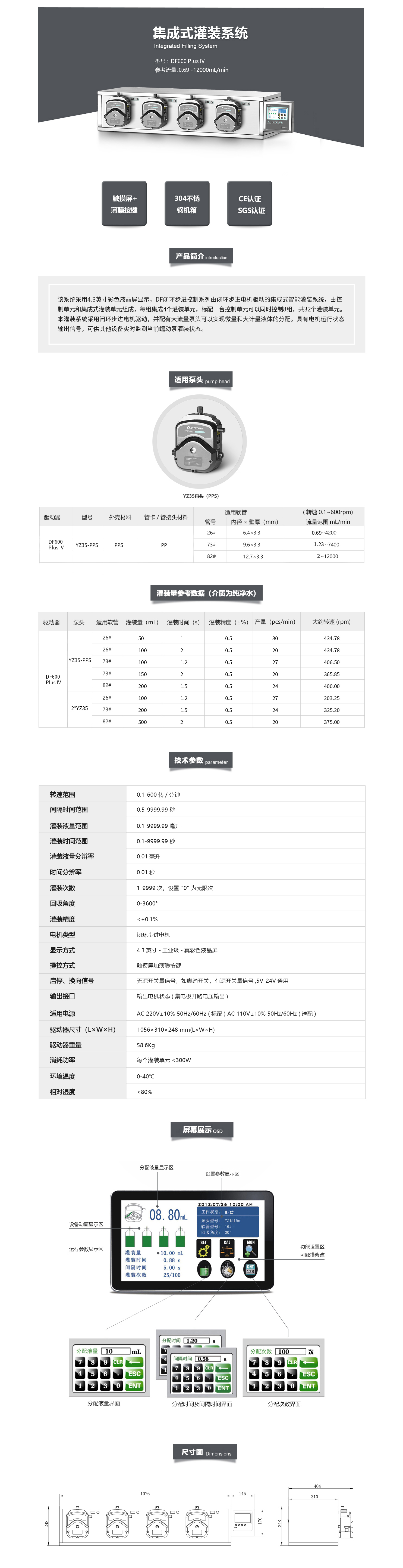 DF600 Plus IV是智能灌裝系統(tǒng),由控制器和集成式執(zhí)行單元組成,每組集成4個(gè)執(zhí)行通道,標(biāo)配一臺控制器可同時(shí)控制8組、共 32個(gè)執(zhí)行通道。